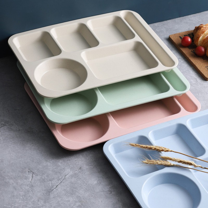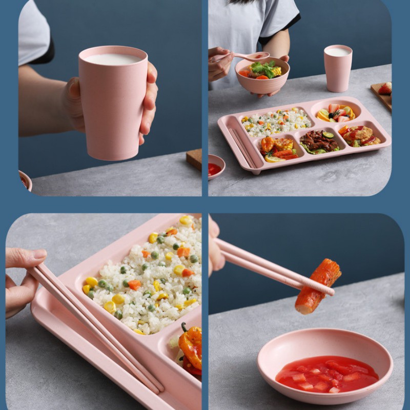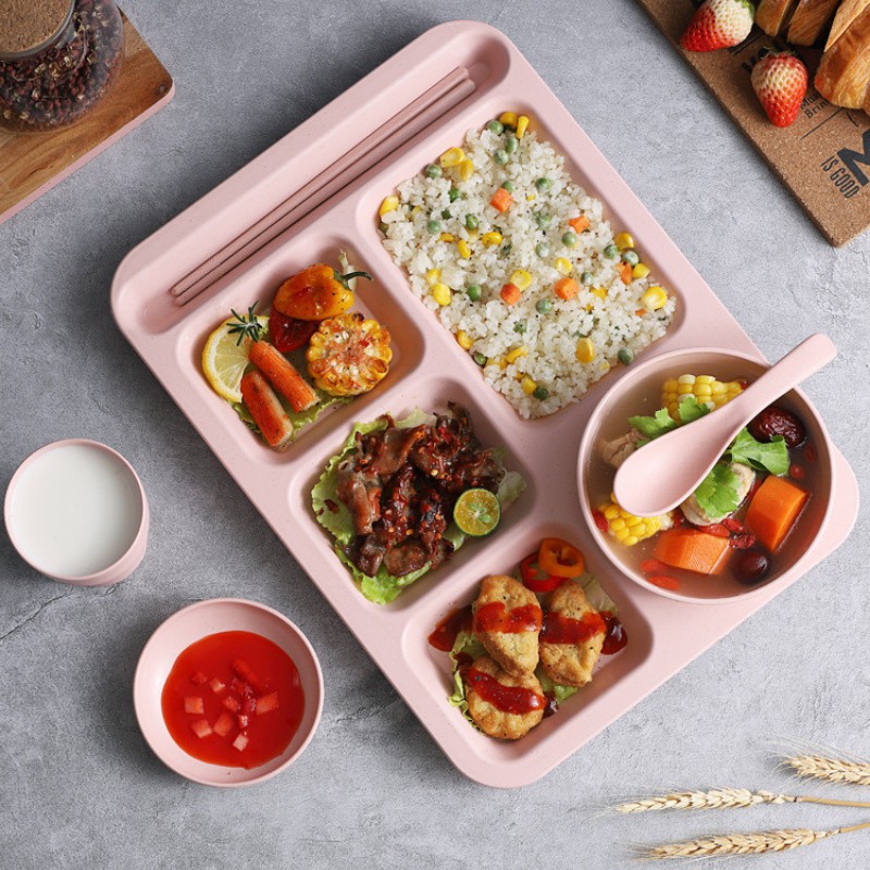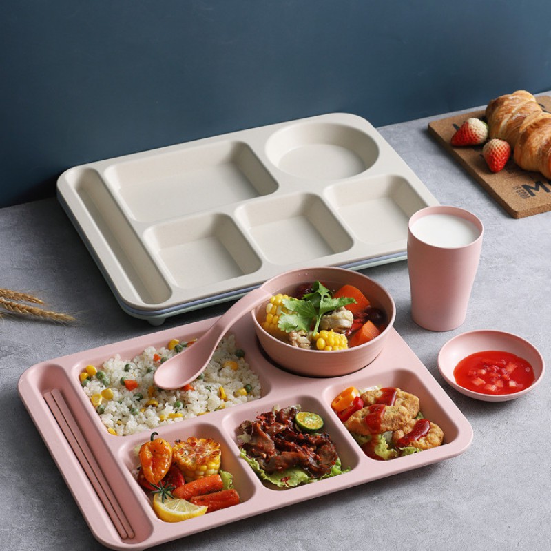 Nhà cửa & Đời sống > Bộ đồ bàn ăn > Dĩa || Khay đựng cơm nhựa lúa mạch 5 ngăn cao cấp đi kèm 5 mónCòn hàng