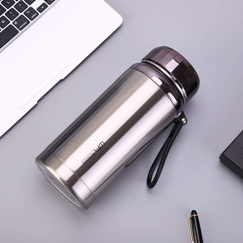 - Bình nước với lớp cách nhiệt chân không tối ưu hoá khả năng giữ nhiệt lên đến 12 tiếng. Đồng thời không xuất hiện hiện tượng ra mồ hôi xung quanh thành bình như những bình giữ nhiệt thông thường khác.