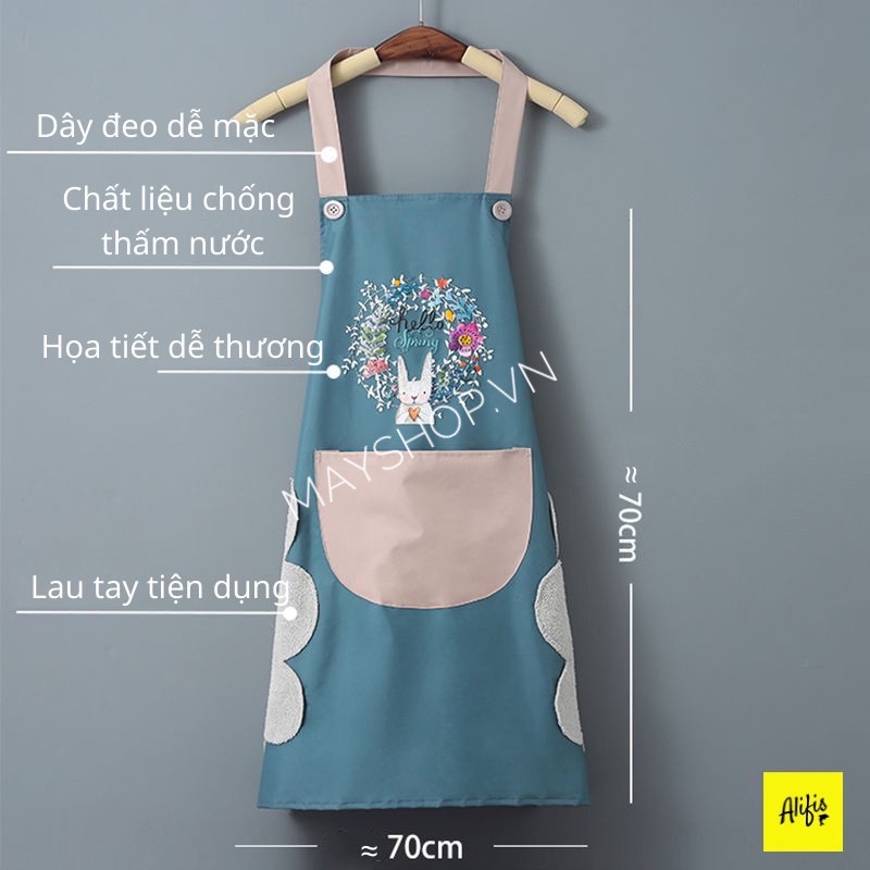 - Sản phẩm: Tạp dề, tạp dề chống thấm nước có lau tay họa tiết thỏ xinh nhiều màu sắc
