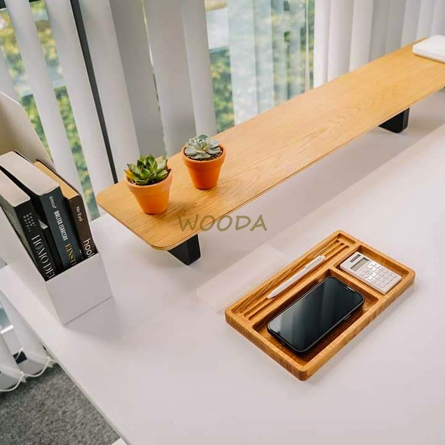 Giới thiệu Khay gỗ tự nhiên đa năng để bàn làm việc từ gỗ sồi và tần bì 18x29.8cm