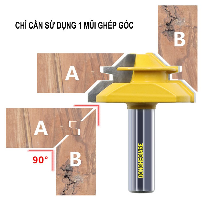 Mũi phay ghép góc vuông ⚡️LOẠI TỐT⚡️ Mũi soi gỗ ghép ván 45 độ lắp máy cầm tay cốt 6 35mm hoặc 12.7mm