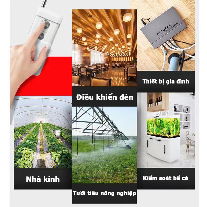 Ứng dụng: Điều khiển từ xa nguồn điện và các thiết bị điện như tưới tiêu đất nông nghiệp, điều khiển máy bơm nước, cảnh quan, công nghiệp chăn nuôi, máy rửa xe, tủ điện phân phối, công trường, v.v.
