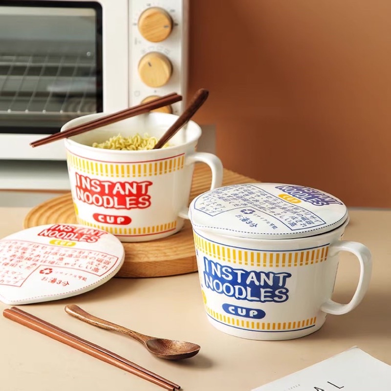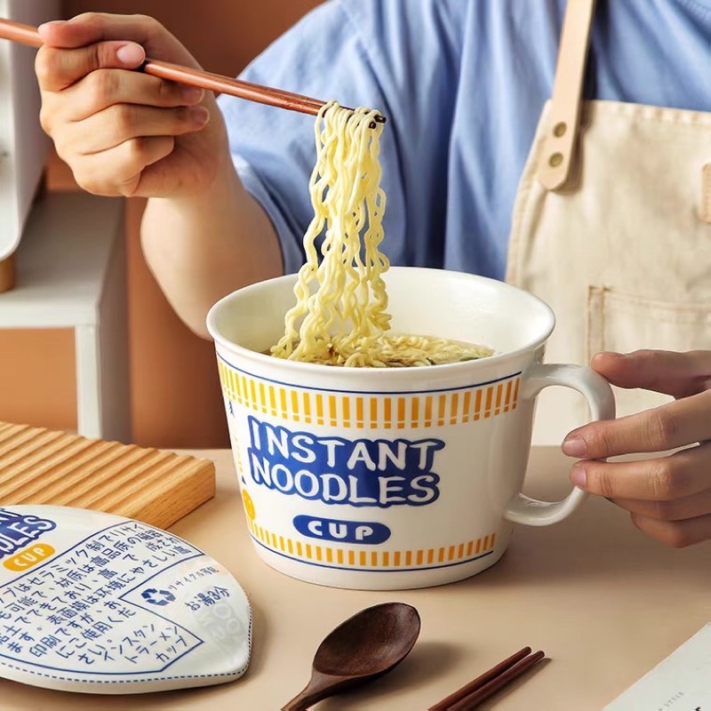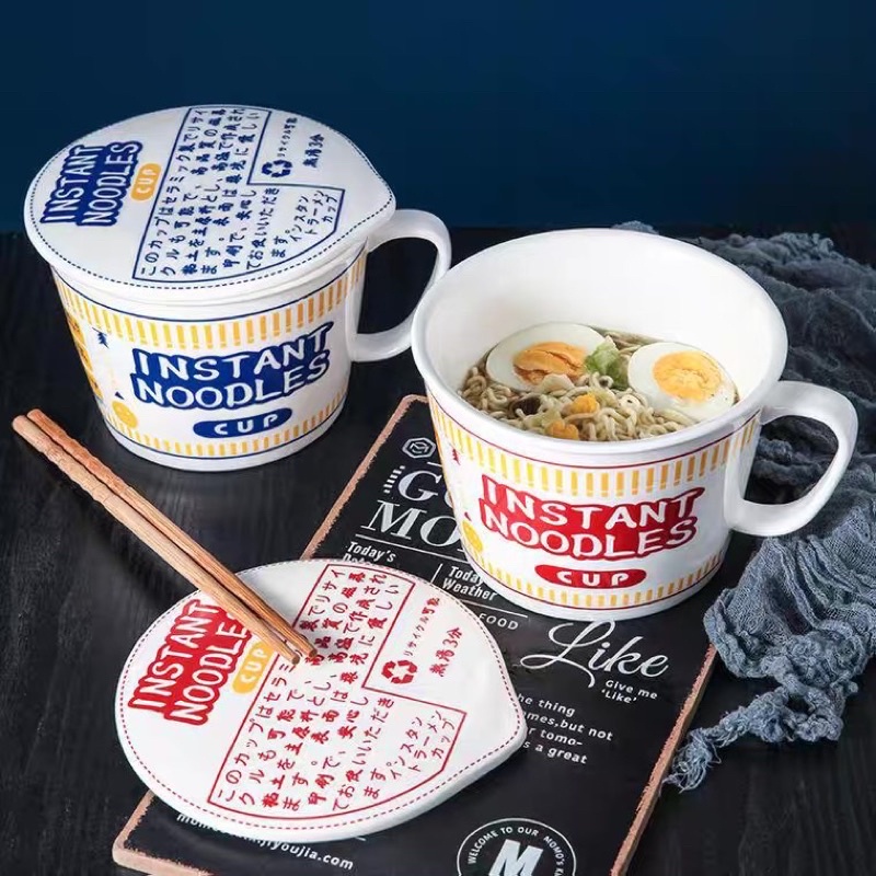 Nhà cửa & Đời sống > Bộ đồ bàn ăn > Tô || Tô úp mỳ có nắp sứ quai cầm, Cốc mì sứ in chữ phong cách Nhật BảnCòn hàng