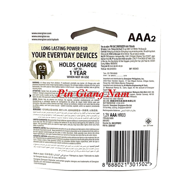 Giới thiệu Pin Sạc AAA 1.2V 700Mah Energizer vỉ 2 Viên