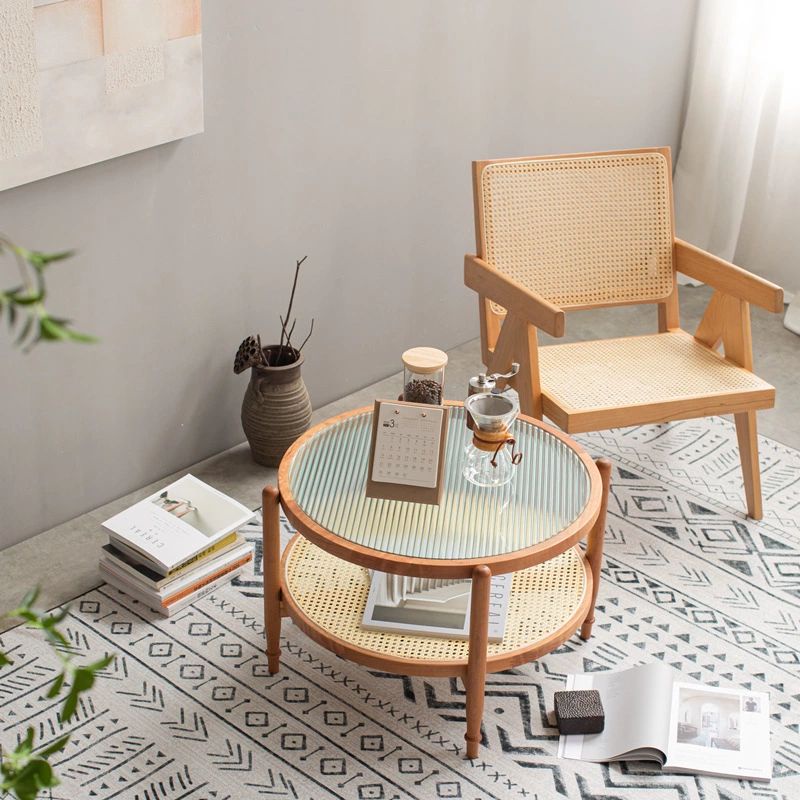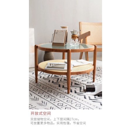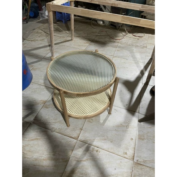 Bàn cà phê mây gỗ Bắc Âu hiện đại, Kính sóng siêu xinh ( ảnh thật ở cuối)