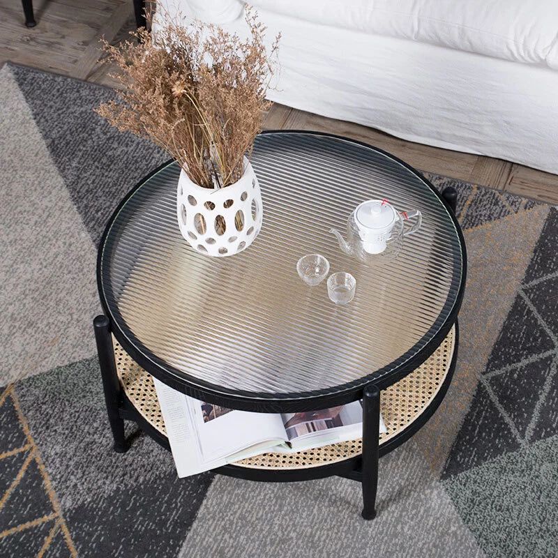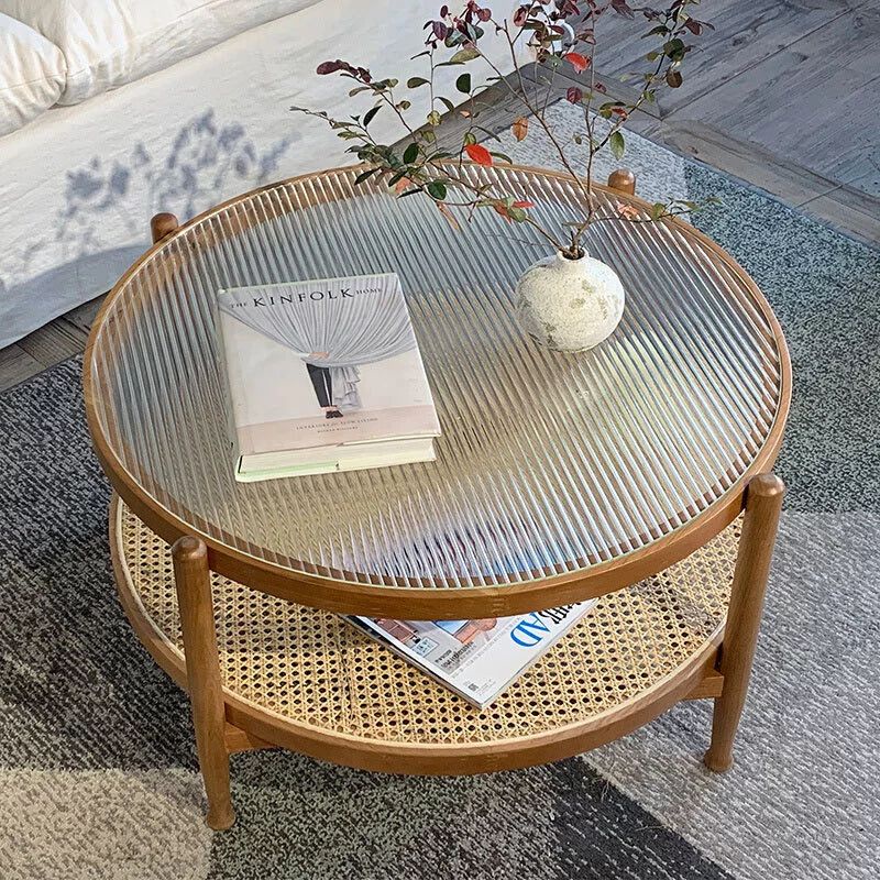 Nhà cửa & Đời sống > Nội thất > Bàn || Bàn cà phê mây gỗ Bắc Âu hiện đại, Kính sóng siêu xinh ( ảnh thật ở cuối)Còn hàng