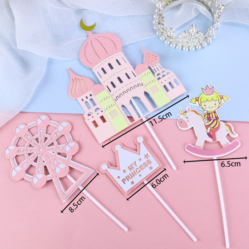 MÔ TẢ : Phụ Kiện Trang Trí Bánh Sinh Nhật Bánh Kem - sét thẻ giấy hoàng tử lâu đài