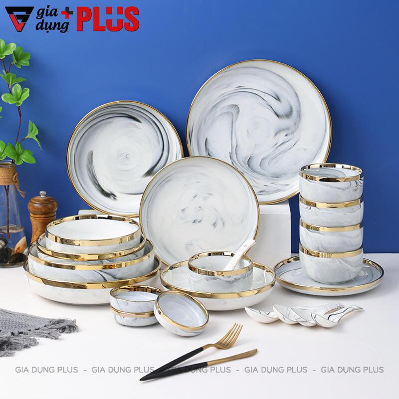 Nhà cửa & Đời sống > Bộ đồ bàn ăn > Tô || Bộ chén bát sứ trắng viền vàng cao cấp phong cách Bắc Âu - Kèm hộp quàCòn hàng