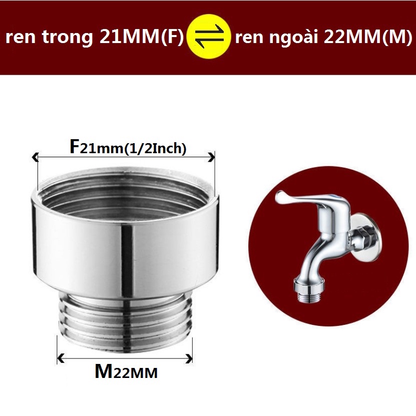 Nhà cửa & Đời sống > Dụng cụ & Thiết bị tiện ích > Chậu rửa & vòi nước || Đầu chuyển đổi vòi nước Inox Ren ngoài F21-M22;M24-M21Còn hàng
