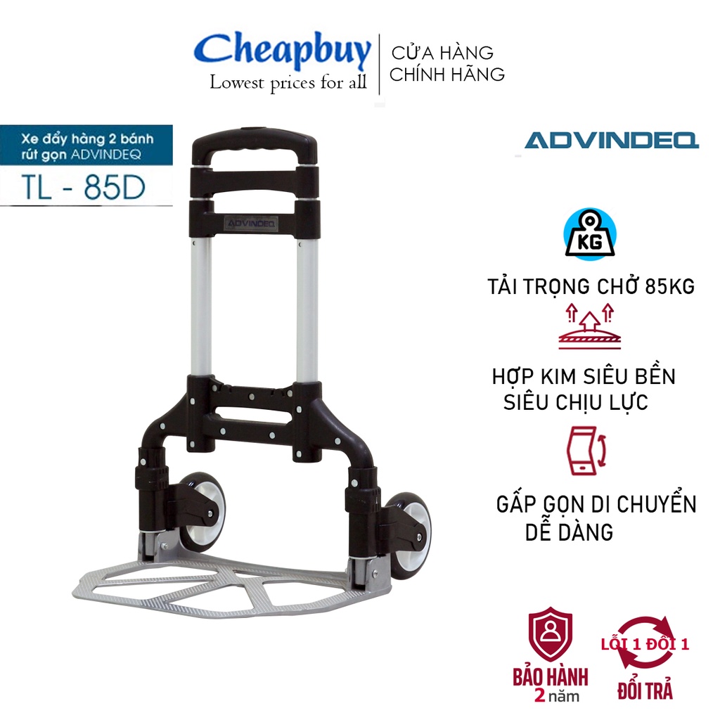 Xe đẩy hàng 2 bánh rút gọn Advindeq TL-85D có trọng lượng nhẹ 2.5kg nhưng trọng tải lớn lên đến 85kg, thiết kế thân thiện dễ dùng và tiết kiệm không gian,… Với những tính năng và ưu điểm vượt trội gói gọn trong một chiếc xe nhỏ bé mà mạnh mẽ, chắc chắn TL-85D sẽ làm bạn hài lòng.