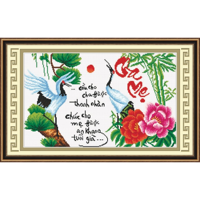 Tranh thêu chữ thập cha mẹ mẫu đơn tre 51419Tranh thường