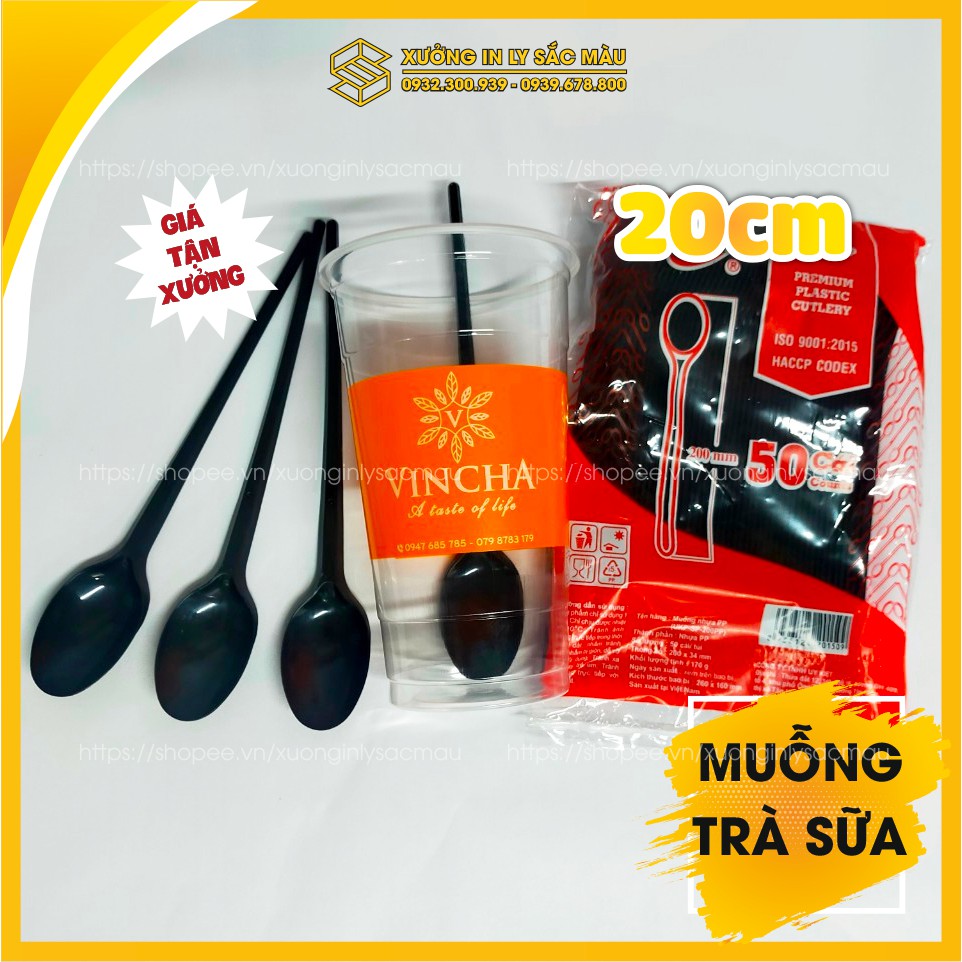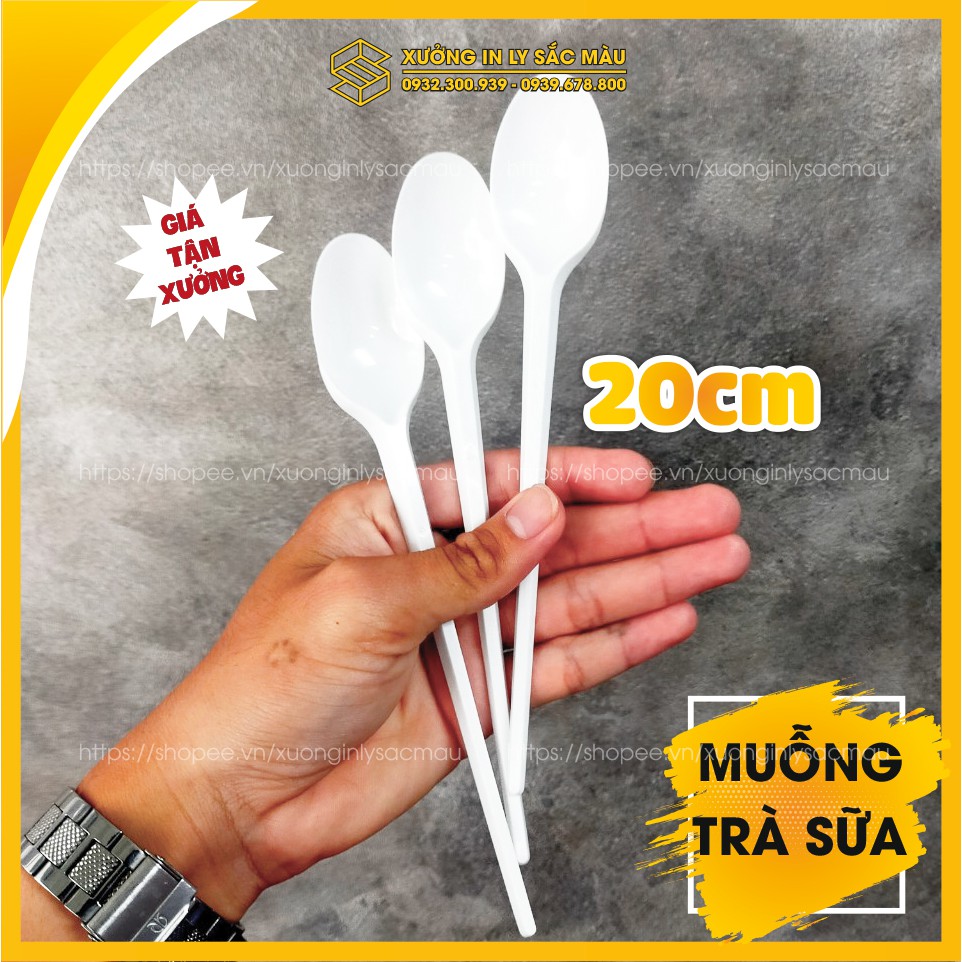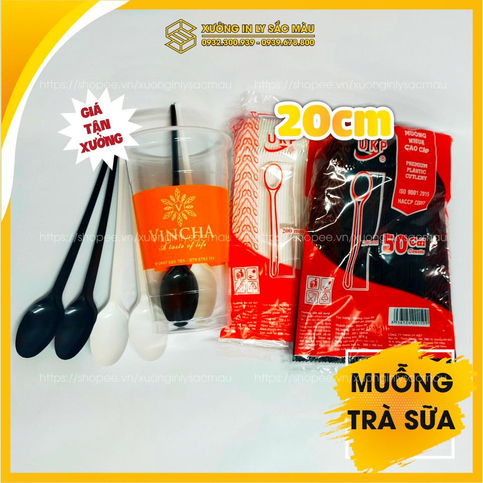 Sỉ 100 muỗng nhựa dài 20cm dành cho quán trà sữa, sinh tố