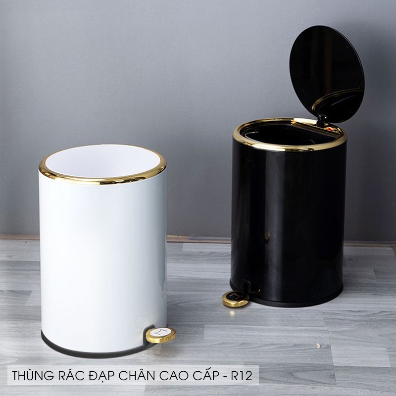 Thùng rác inox có nắp đậy cao cấp - Thùng đựng rác inox gia đình hiện đại INOHA R12