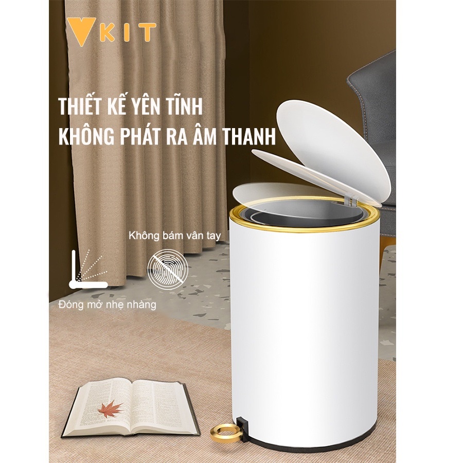 Tên sản phẩm: Thùng đựng rác inox có nắp đậy hiện đại sang trọng Vkit