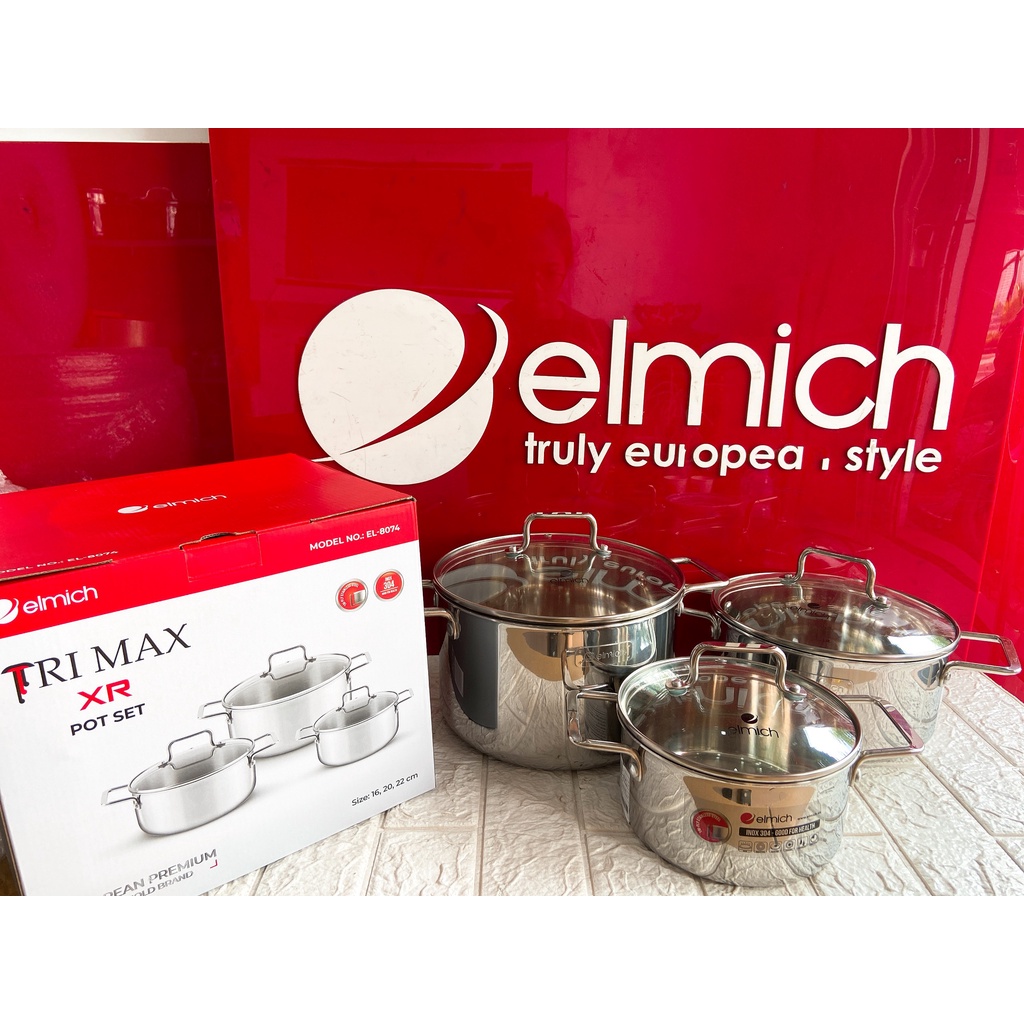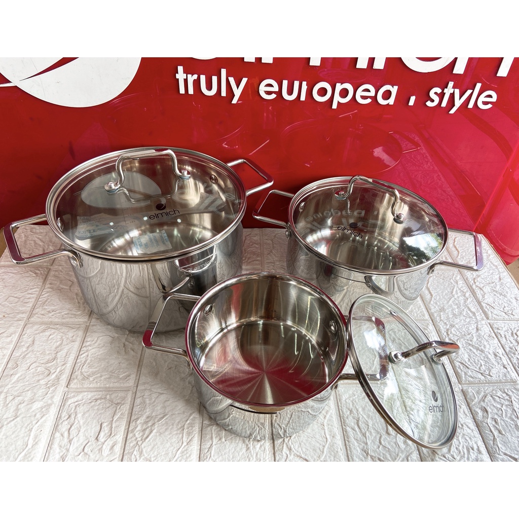 Nhà cửa & Đời sống > Dụng cụ nhà bếp > Nồi || Bộ nồi inox liền khối Elmich Trimax XR EL-8074 size 16, 20, 22cmCòn hàng