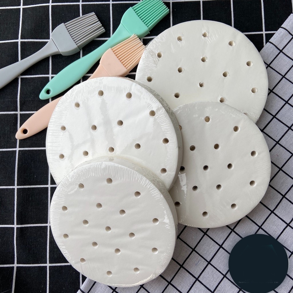 Set 100 Giấy nến nướng bánh đục lỗ tròn thấm dầu chống dính cho nồi chiên không dầu