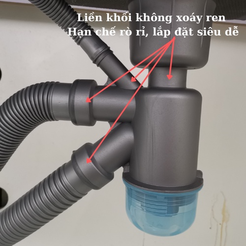 Bộ xiphong này thiết kế phá vỡ mọi quy tắc của thiết kế truyền thống: Hạn chế tối đa các mối ghép nối, xoáy ren. Các chi tiết thiết kế liền khối nguyên bộ chỉ việc gắn bầu rác vào là xong. Không tìm đâu được bộ nào lắp đặt dễ hơn bộ này luôn ạ.