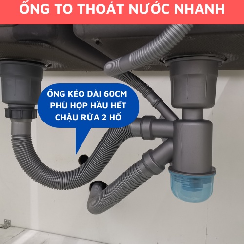 Xiphong bồn rửa bát 2 hố CHỐNG RÒ RỈ Thoát Nước Nhanh Ngăn mùi hôi 2 cốc 11cm