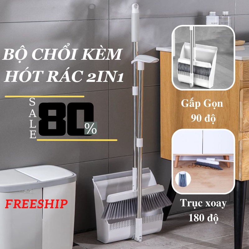 Chổi Quét Nhà, Chổi Nhựa Kèm Hót Rác Cán Dài Gấp Gọn Tiện LợiChổi quét nhà được làm từ nhựa cao cấp, đảm bảo không chứa chất độc hại, an toàn cho người sử dụng