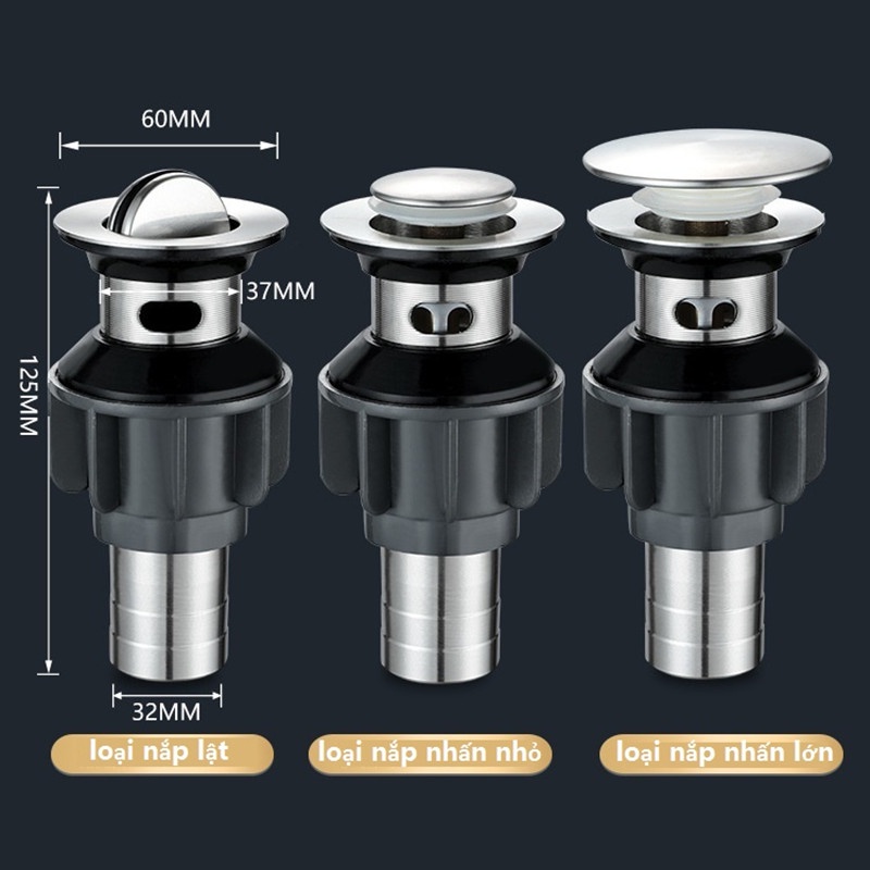 Xi phông thoát nước bồn rửa mặt loại nhấn, không cần dùng keoChất liệu: thép không gỉ + nhựa;