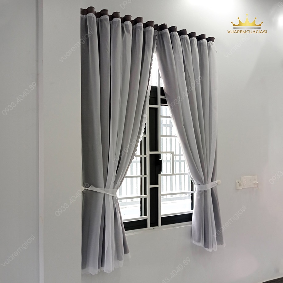 Rèm cửa dán tường 2 lớp xám đậm voan trắng chống nắng trang trí cửa sổ vuaremgiasi