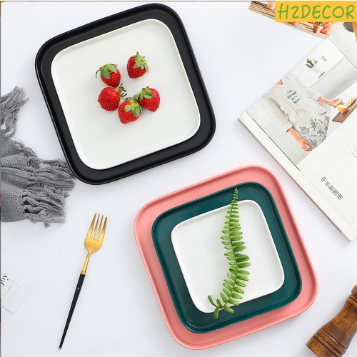 Nhà cửa & Đời sống > Bộ đồ bàn ăn > Dĩa || Đĩa vuông phẳng một màu tráng men cao cấp phong cách Bắc Âu-H2DECORCòn hàng