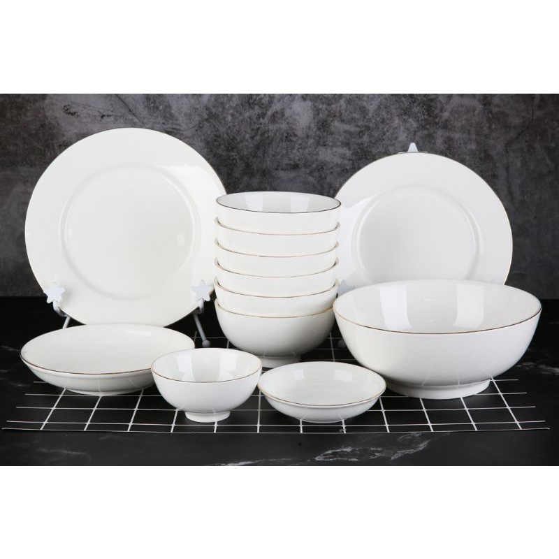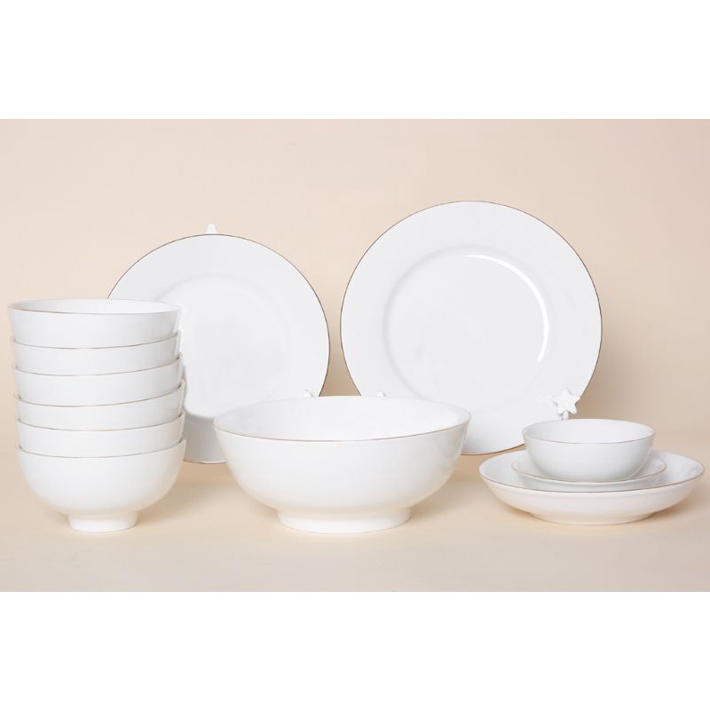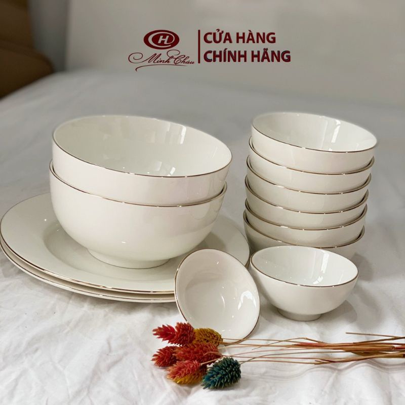Tên sản phẩm: Bộ tô bát đĩa sứ trắng viền vàngMinh ChâuChất liệu Sứ cao cấp