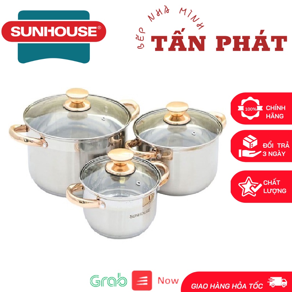 Nhà cửa & Đời sống > Dụng cụ nhà bếp > Nồi || [Mã 253LIFESALE giảm 8% đơn 99K] Bộ 3 Nồi 5 Đáy Sunhouse SH781 Chính HãngCòn hàng
