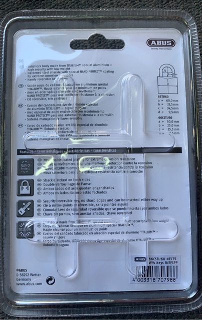 Nhà cửa & Đời sống > Bảo hộ gia đình > Khóa, ổ khóa || KHÓA TITALIUM CHỐNG CẮT ABUS 66CSTI/60 - 66CSTI-60Còn hàng