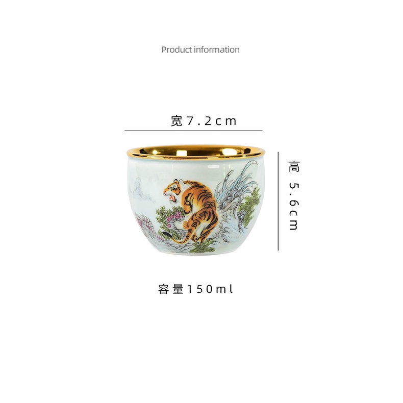 Chén Sứ Cảnh Đức Vẽ Tay Thủ Công lòng chén dát vàng 24K (Sản phẩm cao cấp 150 ml)Mô tả sản phẩm: