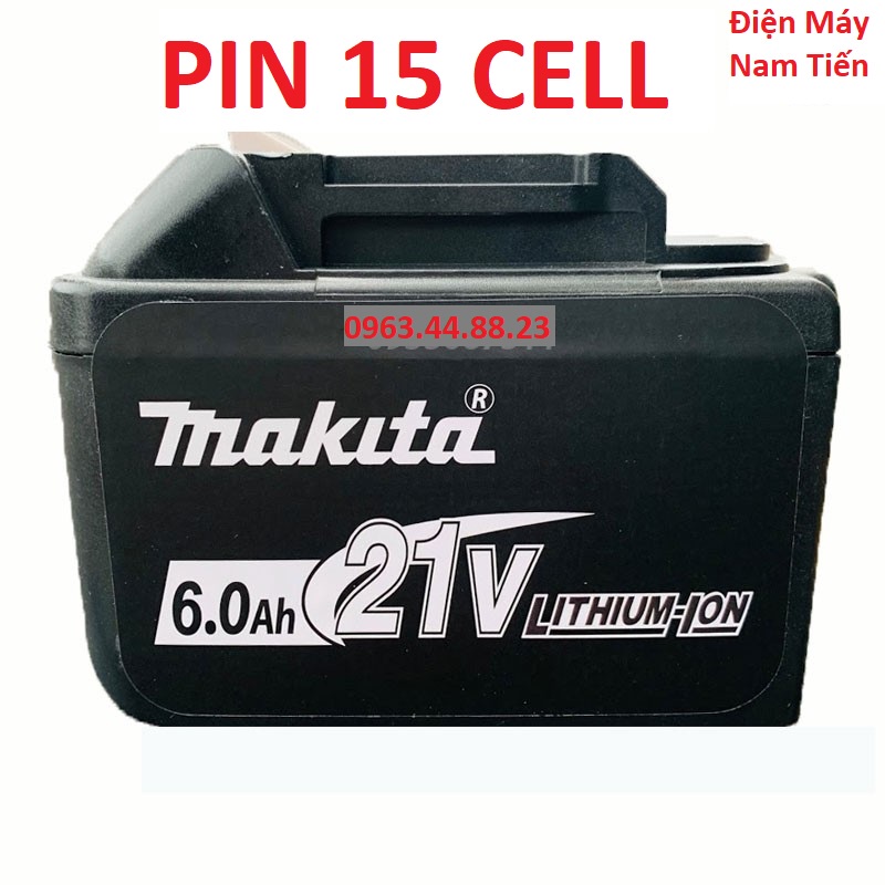 Pin Máy Khoan 21V 6000mah,Loại 15 Cell Pin,Xả 30A,Chân Makita,Bảo Hành 3 Tháng
