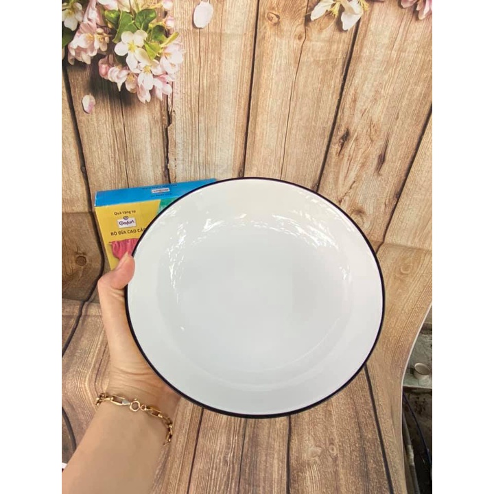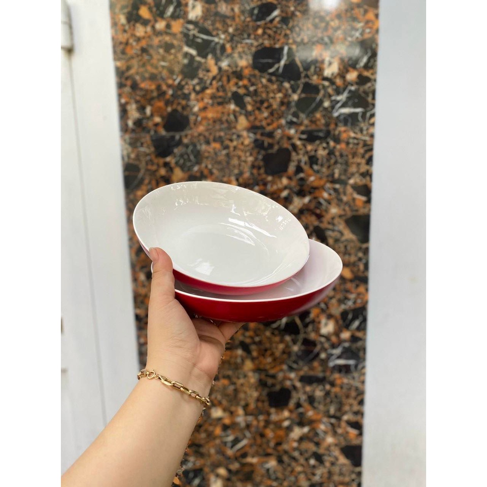 Dĩa sứ lòng sâu dày cao cấp size 20cm lòng sâu 3cm,- Mẫu mã: lòng trắng sơn vàng