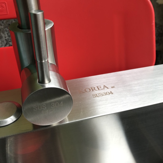 -Chậu làm từ inox 304 sẽ sáng bóng, dày, bề ngoài chậu được sơn 1 lớp sơn tĩnh điện cách ồn nên khi rửa bán đĩa sẽ không nghe tiếng kêu ổn từ nước xả hay tiếng bát đĩa va vào thành chậu.