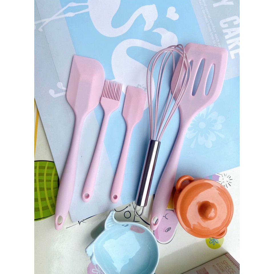 Nhà cửa & Đời sống > Dụng cụ nhà bếp > Cây vét bột & đồ gắp thức ăn || Bộ dụng cụ thìa nấu ăn nhà bếp 5 món silicon cao cấp chống dính chịu nhiệtCòn hàng