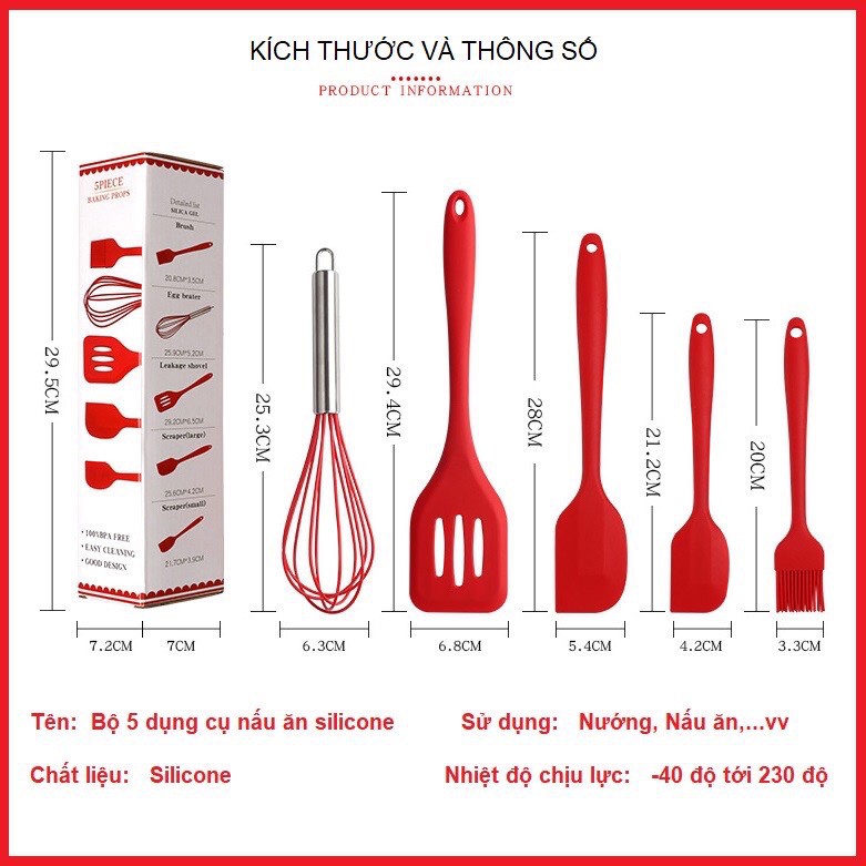 * Chất liệu silicon sỉ zalo 0375928030* Bộ gồm 5 món: vét bột lớn, vét bột nhỏ, khuấy lòng, chuổi phết, vá chiên xào