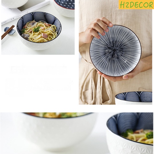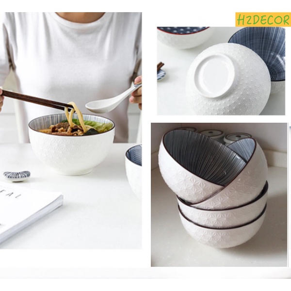 Giới thiệu Bát tô hoạ tiết sọc xanh tráng men cao cấp, hoa văn dập nổi - H2decor