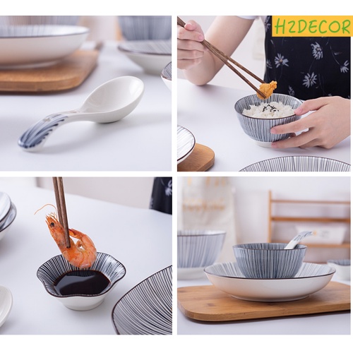 Nhà cửa & Đời sống > Bộ đồ bàn ăn > Dĩa || SET Bát Đĩa Gốm Sứ Họa Tiết Sọc Xanh Phong Cách Bắc Âu - H2DECORCòn hàng