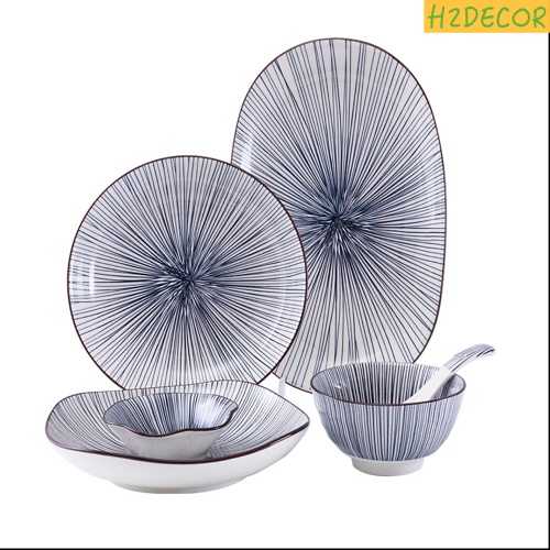 SET Bát Đĩa Gốm Sứ Họa Tiết Sọc Xanh Phong Cách Bắc Âu - H2DECORTHÔNG TIN SẢN PHẨM