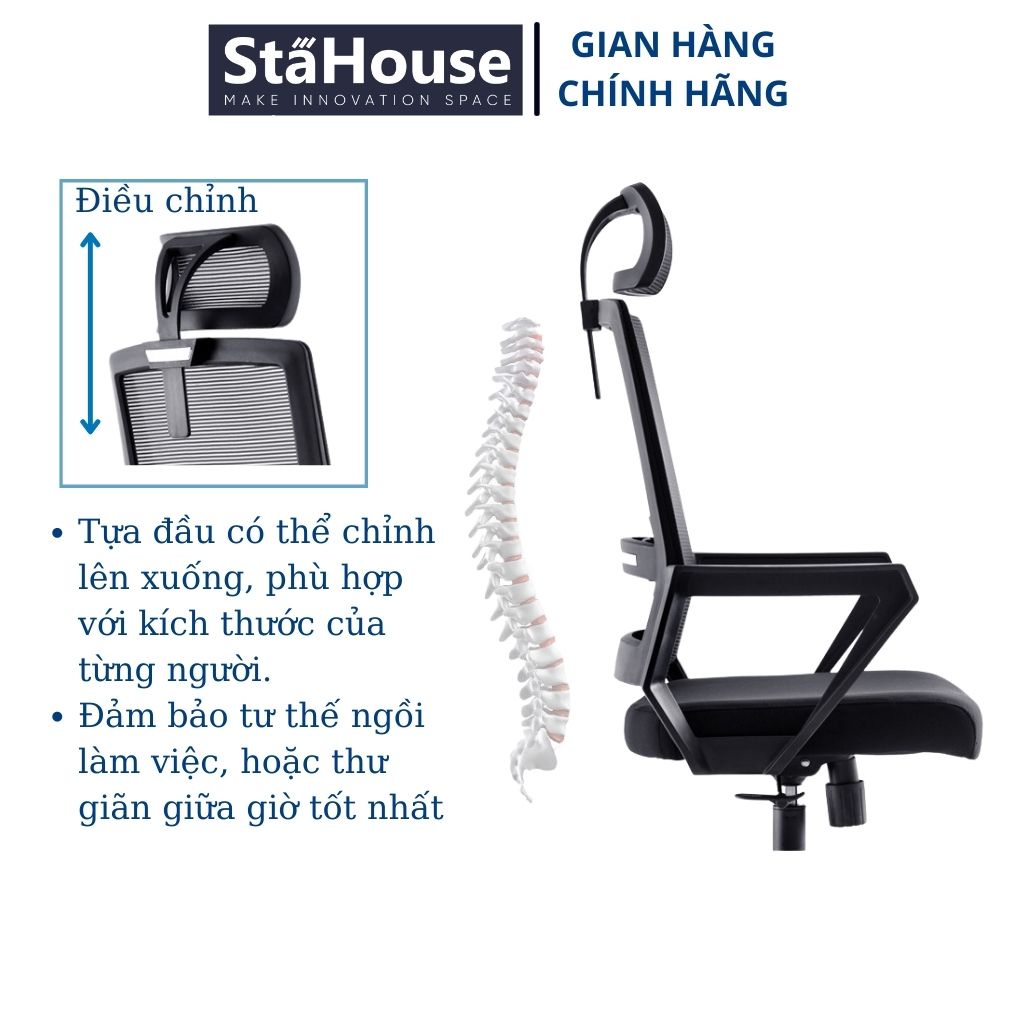 Nhà cửa & Đời sống > Nội thất > Ghế, ghế dài, ghế đẩu || [FREESHIP] Ghế Văn Phòng Tựa Đầu Chân Xoay Công Thái Học Stahouse GVP-GD403Còn hàng