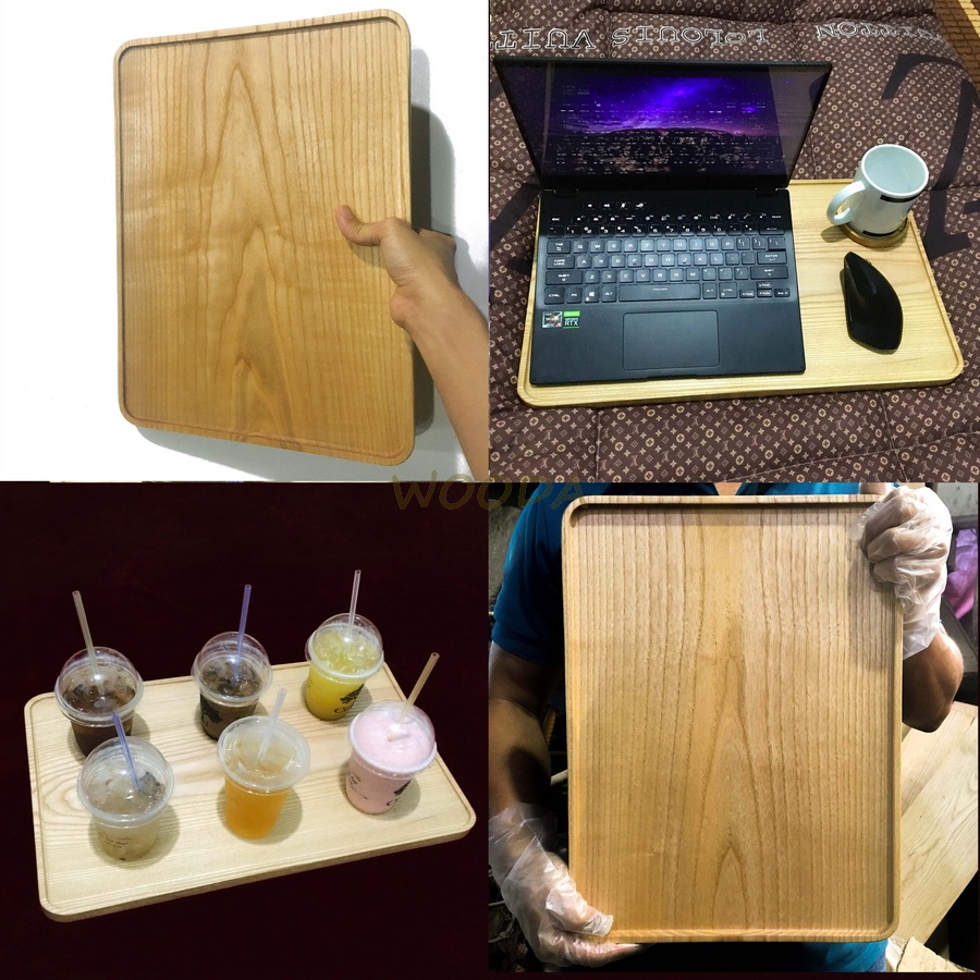 Giới thiệu Khay gỗ / Mâm gỗ loại to hình chữ nhật đa năng nhiều kích thước bằng gỗ ASH