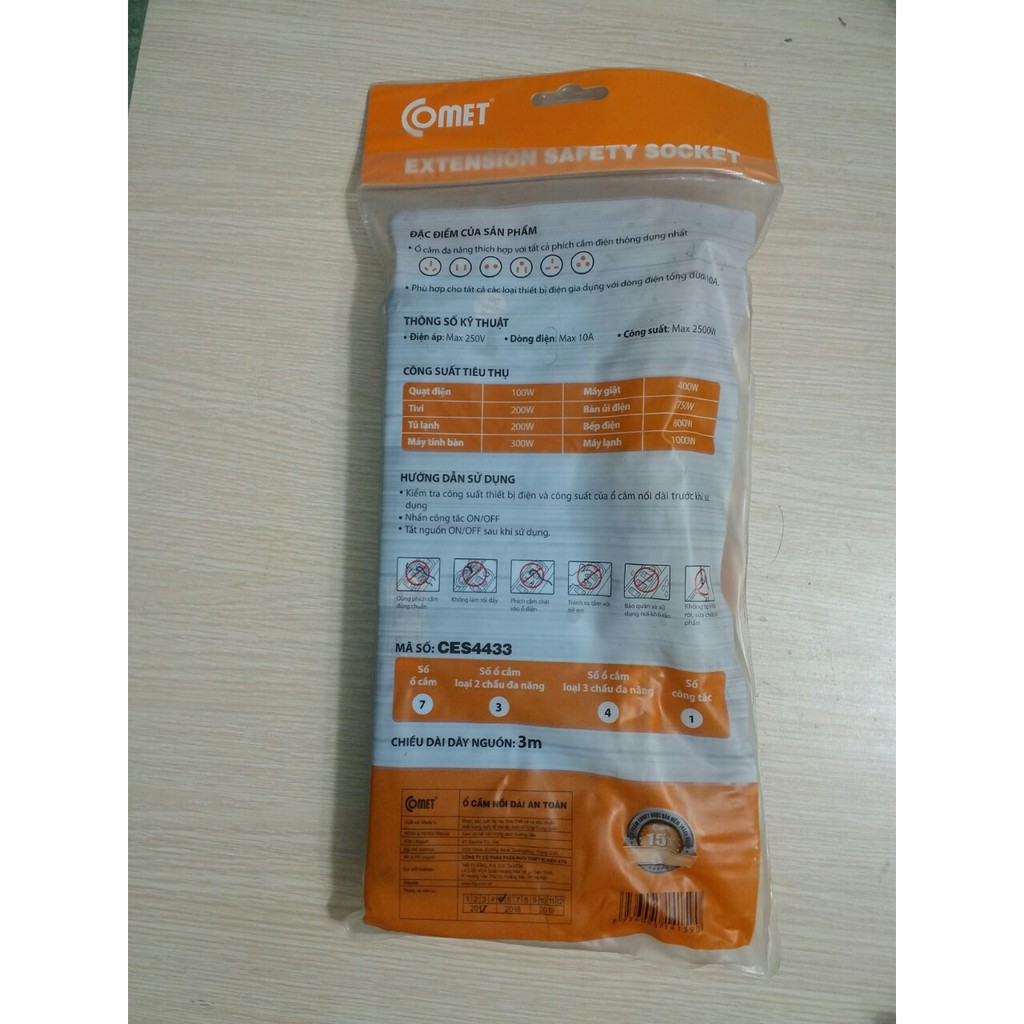 Thiết Bị Điện Gia Dụng > Mạch điện & Phụ tùng > Ổ cắm điện & Dây nối || Ổ cắm điện Comet CES4433 - CES4435 (4 ổ 3 chấu đa năng, 3 ổ 2 chấu, Dây dài 3m và 5m)Còn hàng