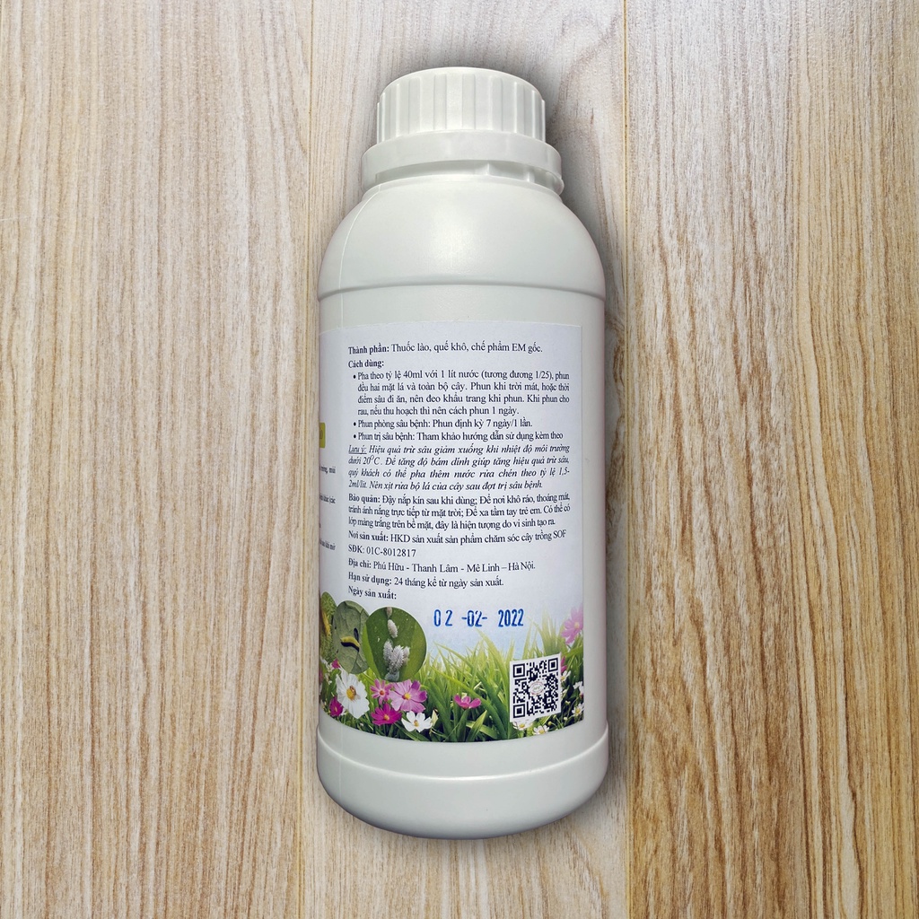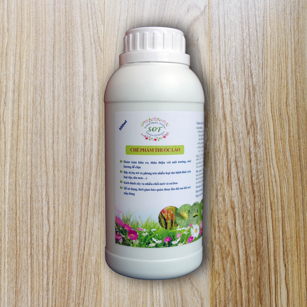 Chế phẩm thuốc lào SOF là một dạng Chế phẩm sinh học có tác dụng trừ sâu, được lên men từ thảo mộc tự nhiên gồm Thuốc lào và Quế khô☘️Sản phẩm giúp bảo vệ hữu hiệu khu vườn của bạn khỏi nhiều loại sâu bệnh hại cây trồng: Đặc trị bọ trĩ, các loại rệp (kể cả loại rệp khó trị như rệp sáp, rệp vảy ốc), sâu ăn lá (chỉ trị được sâu từ 1-3 tuổi)... Trong đó, rất hiệu quả khi trị bọ trĩ, các loại rệp, rầy