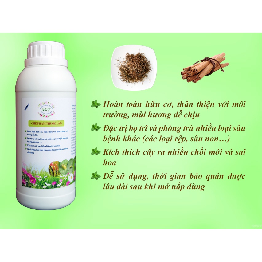 Giới thiệu Chế phẩm sinh học trừ sâu 500ml (Chế phẩm thuốc lào) trị Bọ trĩ, rệp, nhện đỏ, sâu