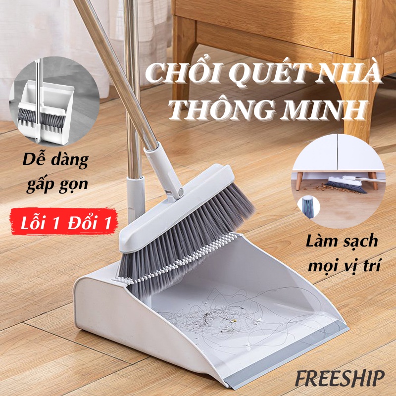 Chổi quét nhà thông minh có Thiết kế thông minh với cán dài, hốt rác hình hộp, bạn có thể yên tâm về việc rác, bụi sau khi quét sẽ không bay ngược lại ra nhà.