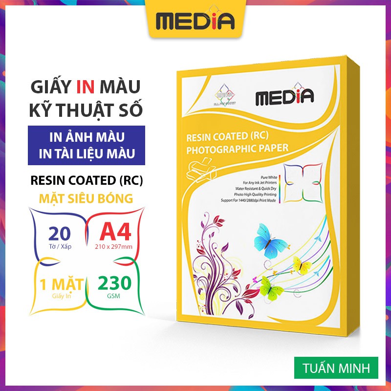 Văn Phòng Phẩm > Sổ & Giấy Các Loại > Giấy In || Giấy In Ảnh Cao Cấp Media RC 1 Mặt Siêu Bóng A4 230gsm 20 TờCòn hàng