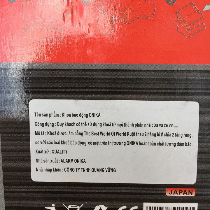 - Tên sản phẩm: Ổ khóa báo động chống trộm cao cấp ONIKA JAPAN có còi báo động.