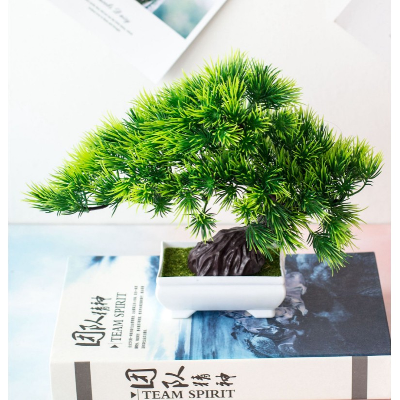 Nhà cửa & Đời sống > Trang trí nhà cửa > Hoa trang trí || Chậu Cây Thông Xanh Bonsai Giả Để Bàn, trang trí kệ treo tường, giá sách, decorCòn hàng