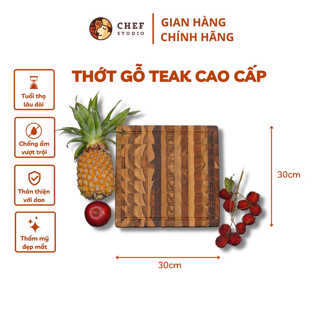 Nhà cửa & Đời sống > Dụng cụ nhà bếp > Thớt || Thớt gỗ Teak Chef Studio cao cấp hình vuông dày 2.5 cm, đa dụng, an toàn cho sức khỏeCòn hàng
