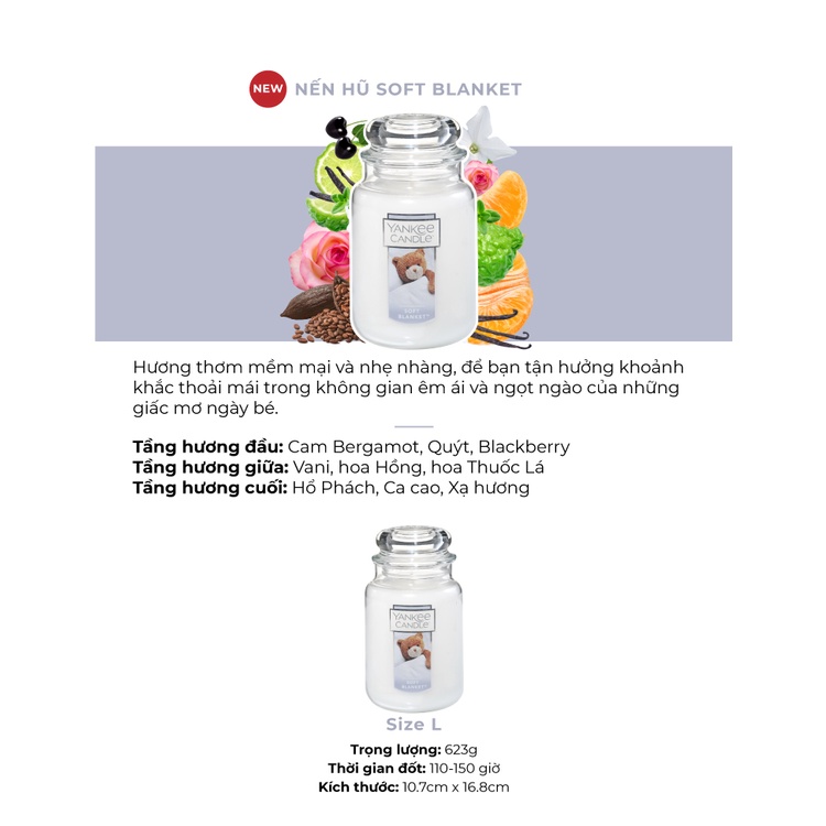 Giới thiệu Nến hũ Yankee Candle size L - Soft Blanket (623g)