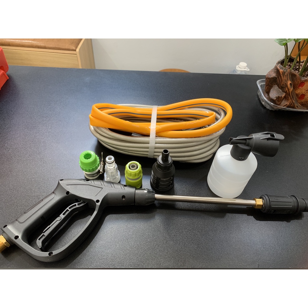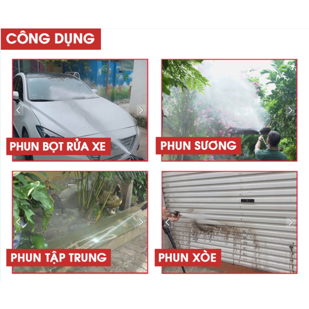 ✔️ Trang bị vòi xịt có khả năng phun xa đều rộng, mạnh mẽ, mọi ngóc ngách khó chùi rửa nhất như gầm xe, góc tủ, hồ cá…